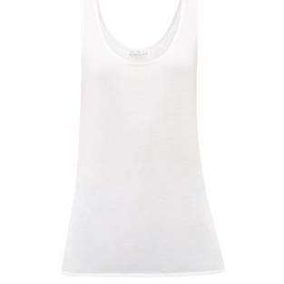 #2. El TANK TOP o blusa sin mangas blanca. Apta para todos los climas, cuando hace mucho frío como interior o en climas más calidos combinarla con la prenda que tu quieras. Aquí es importante tener en cuenta que si tienes espalda ancha y hombros, así como también mucho busto es mejor optar por una de tiras gruesas y cuello amplio (en V o redondo). Si te sientes bien con esa zona puedes jugar con tiras más delgadas y hasta con cuello más cerrados (hasta halter) solo fíjate en tu cuello, si es corto (mejor escote abierto), normal (juego con lo que quiero) o largo (cuello cerrado). Ya vemos que hay que tomar en cuenta esos dos factores. Supertip: escógela según tu tonalidad; si eres cálida, opta por la crema o marfil y si eres fría por la blanca.